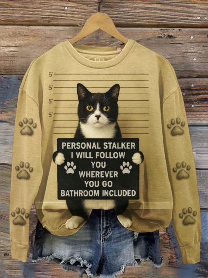 Funny Cat Printed Casual Long-Sleeved T-Shirt