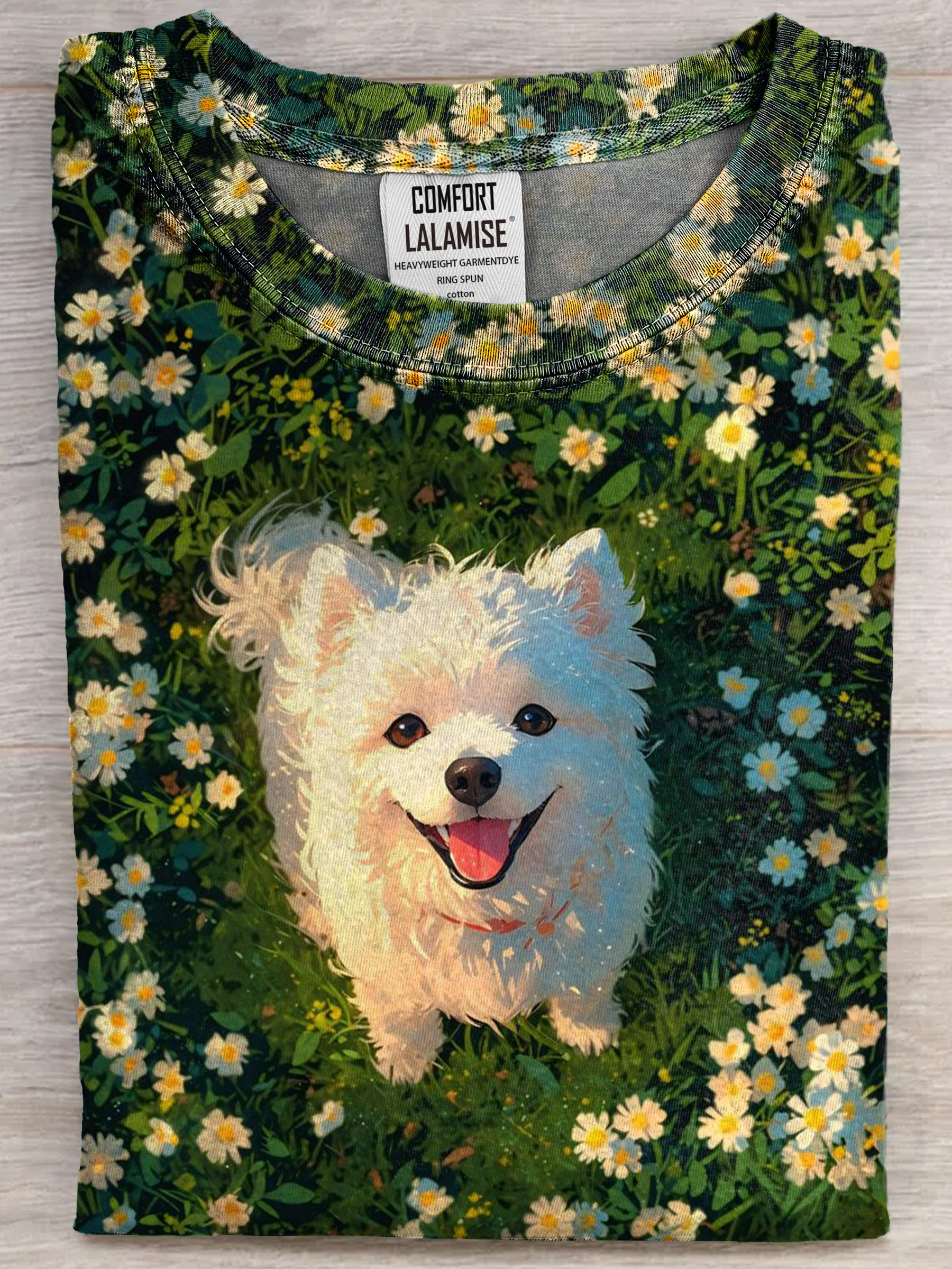 Funny Cute Dog Art Print Casual Cotton Short Sleeve T-shirt