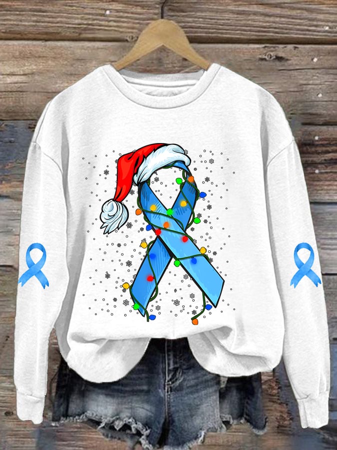 Women's Diabetes Ribbon Christmas Print Long Sleeve Sweatshirt