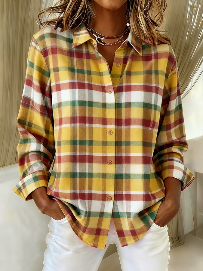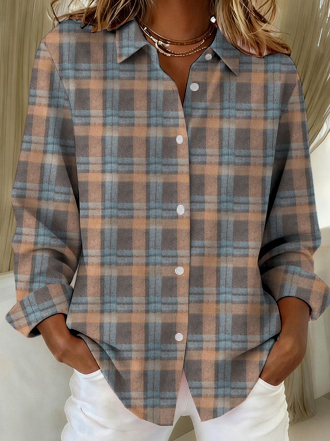 Women's Casual Contrast Color Autumn And Winter Retro Plaid Print Shirt