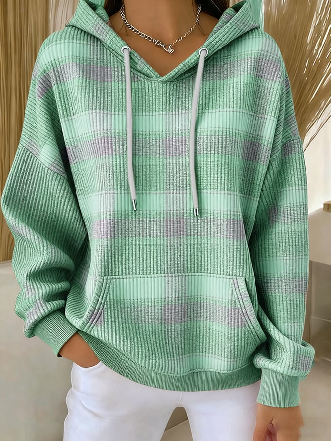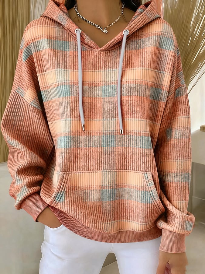 Women's casual retro plaid autumn and winter knitted sweatshirt