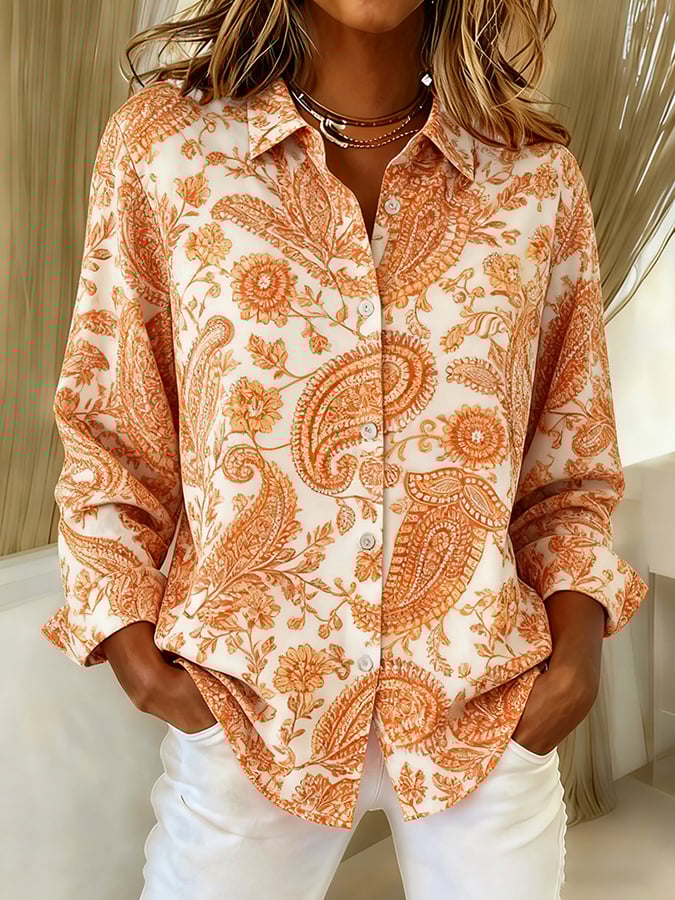 Women's Autumn Thanksgiving Fallen Leaves Print Casual Lapel Shirt