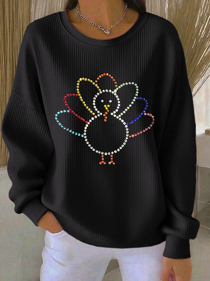 Women's Thanksgiving Pumpkin Football Print Pocketless Sweatshirt