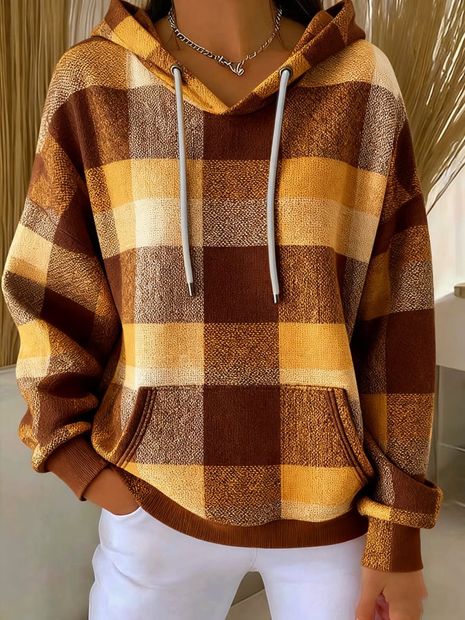 Women's Casual Retro Plaid Autumn And Winter Zipper Sweatshirt
