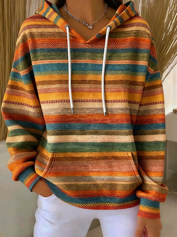 Women's Casual Retro Autumn And Winter Striped Shirt