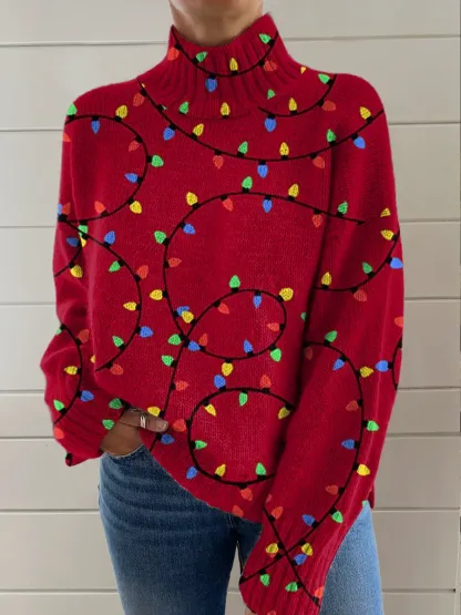 Christmas Print Knit Turtleneck Pullover Sweater