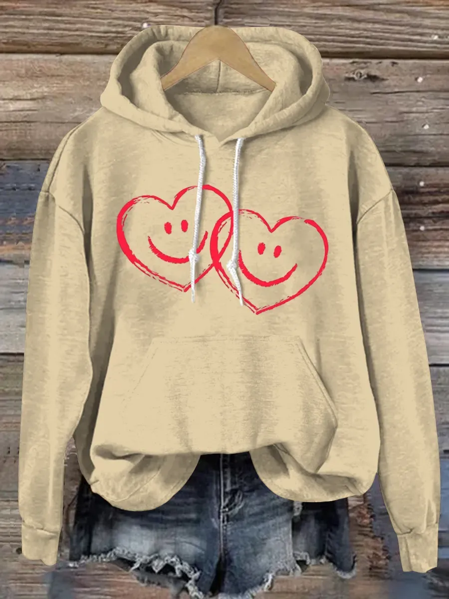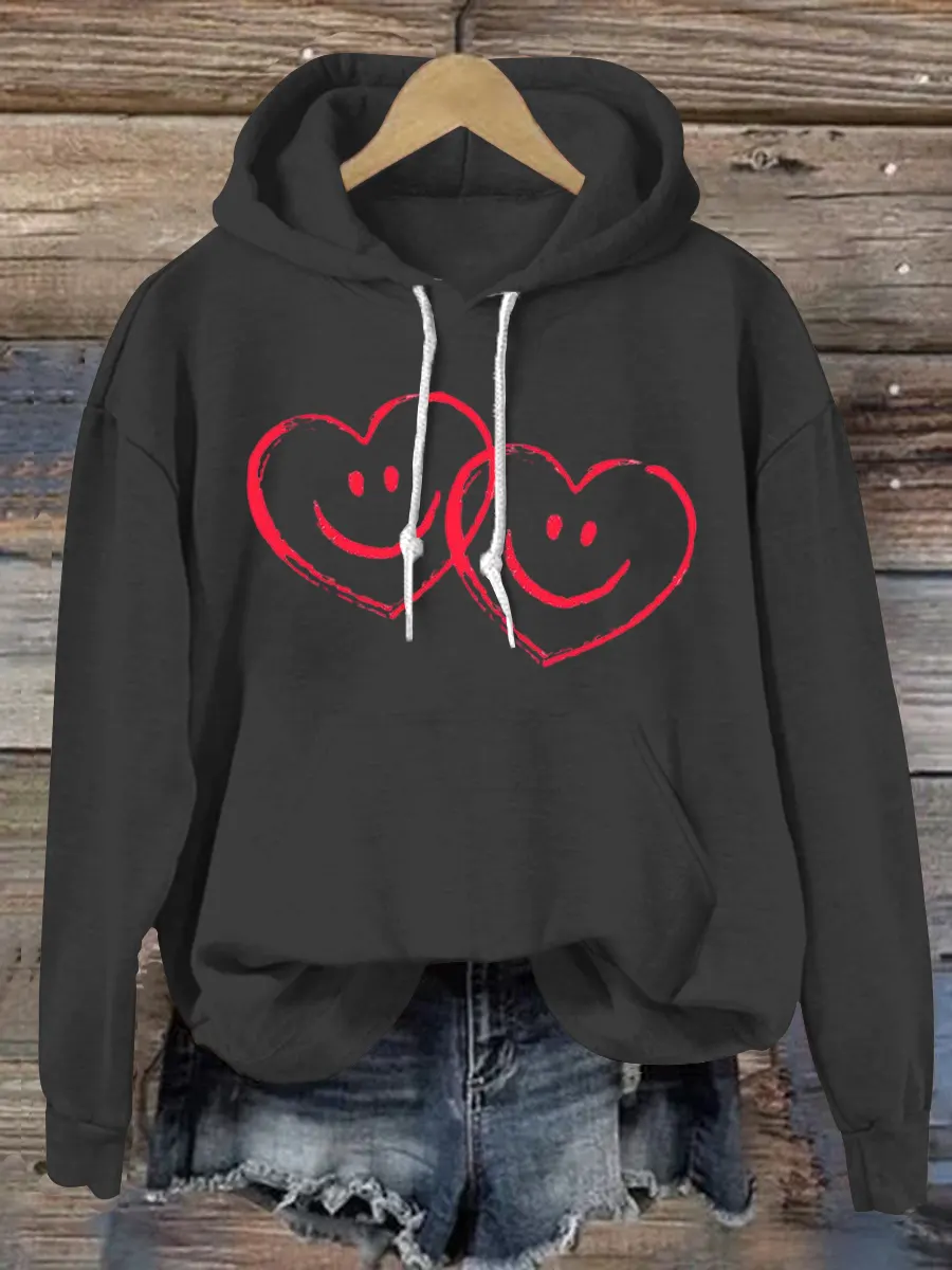 Vintage Heart Art Print Casual Hoodie