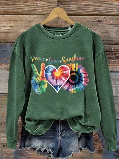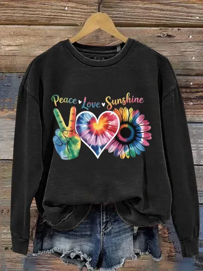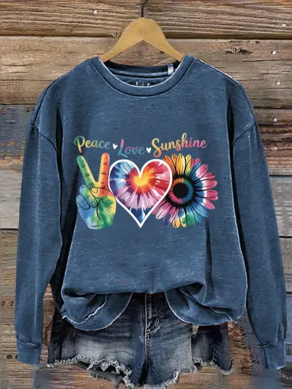 Vintage Peace And Love Art Print Casual Sweatshirt