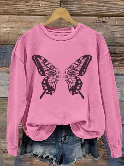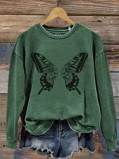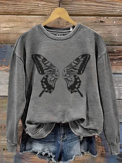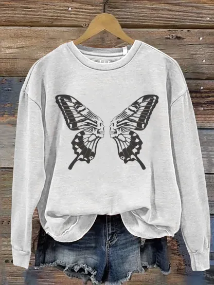 Vintage Skull Butterfly Art Print Casual Sweatshirt
