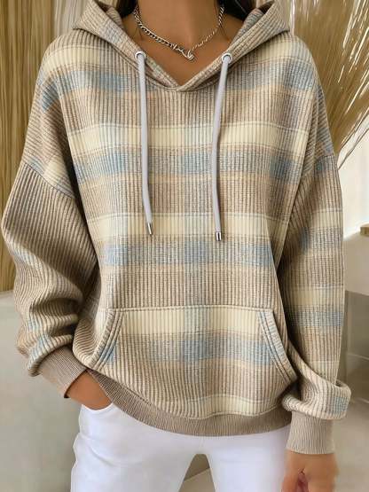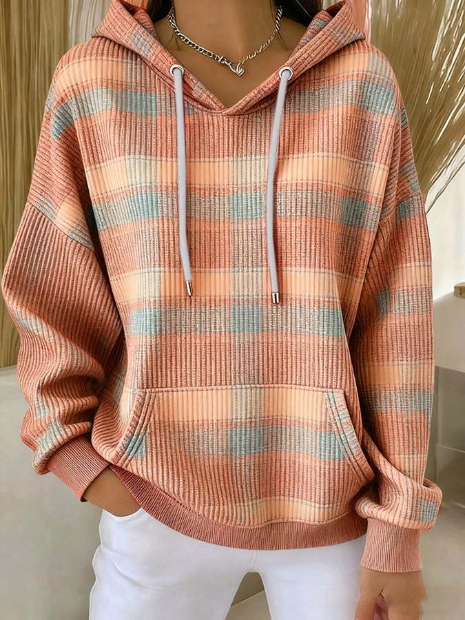 Women's casual retro autumn plaid textured hoodie