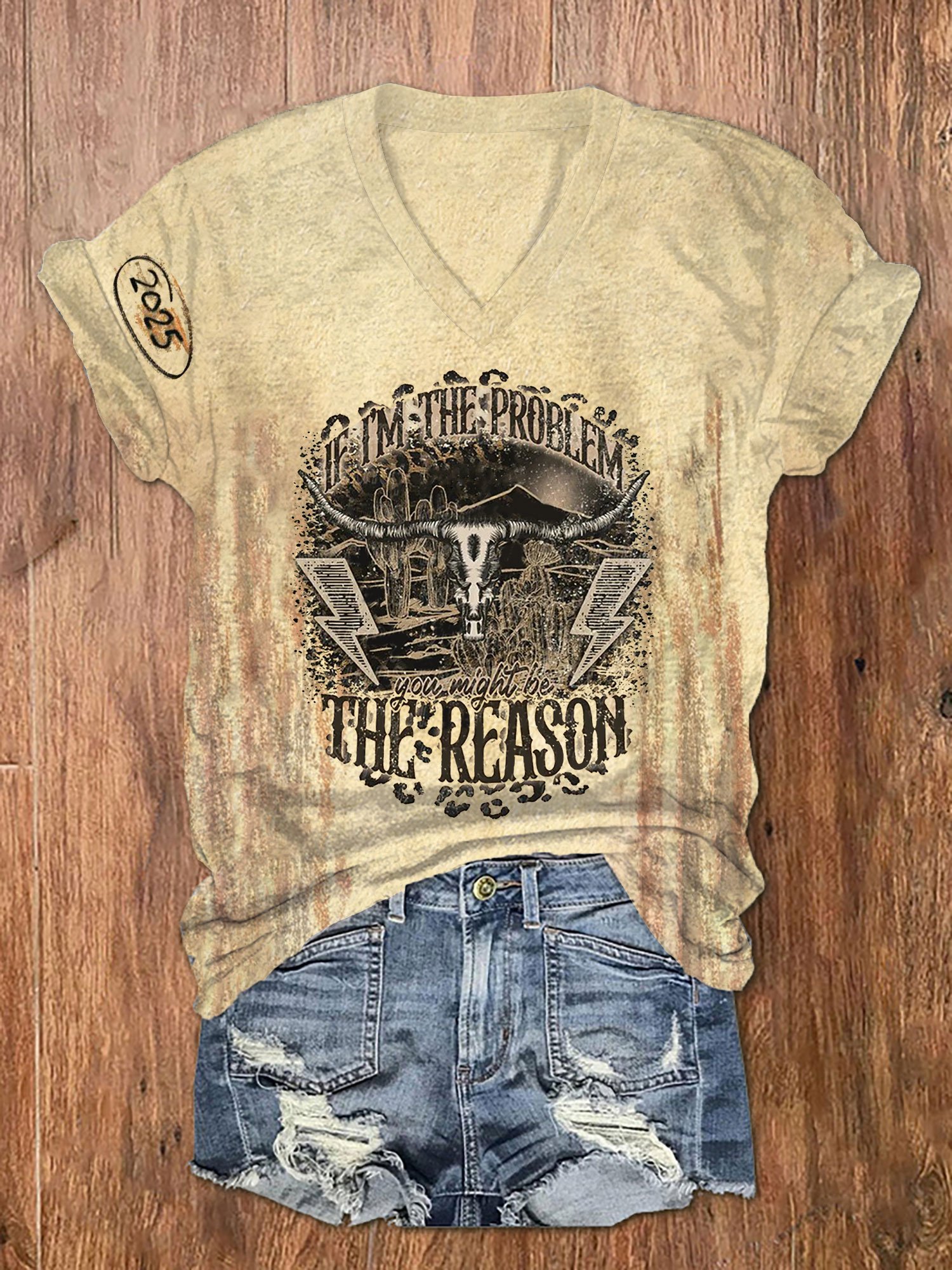 Women's If I'm The Problem You Might Be The Reason Print V-Neck T-Shirt