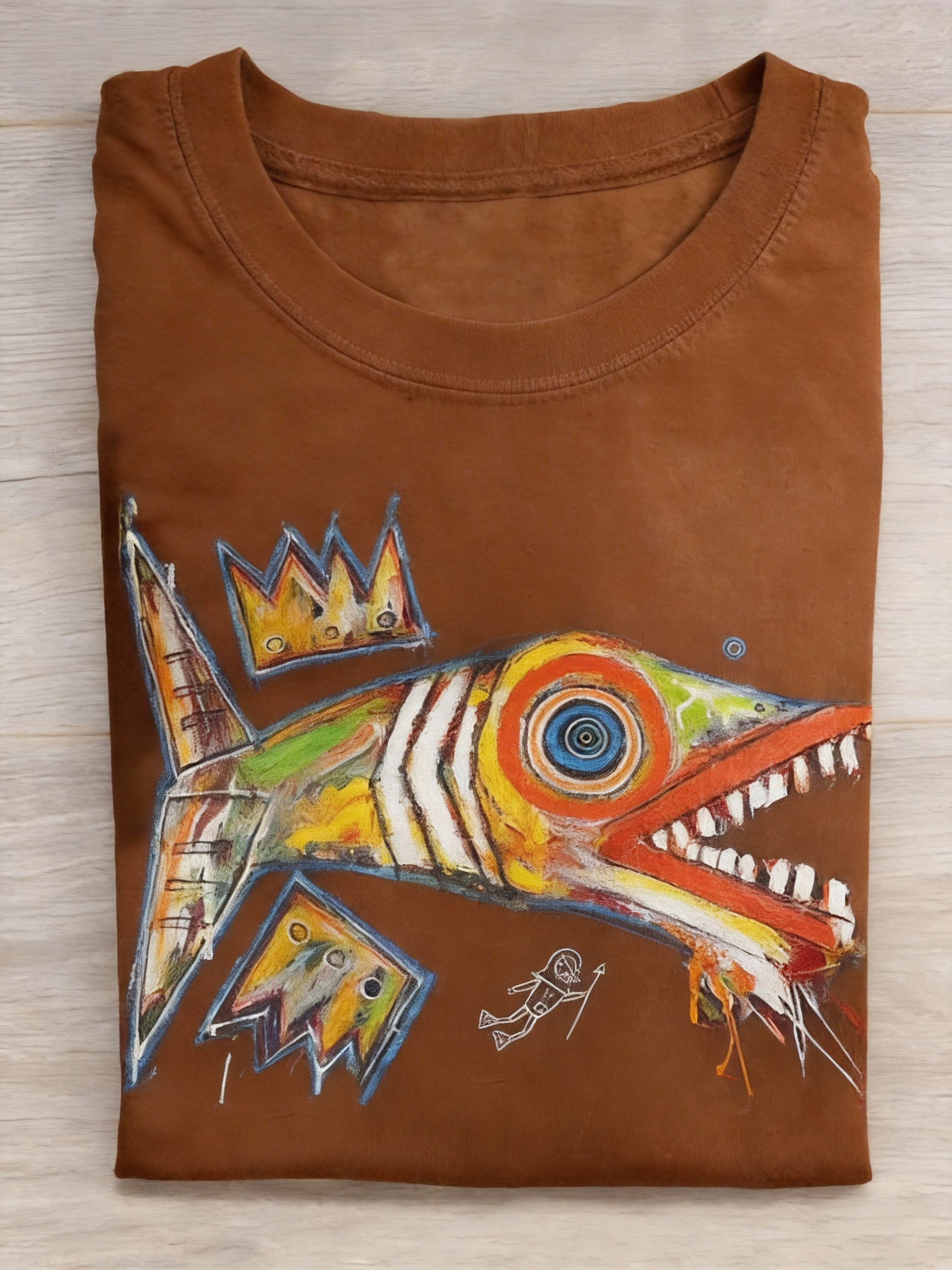 Fun Humor Satire Art Print Casual Pure Cotton Short Sleeved T-shirt