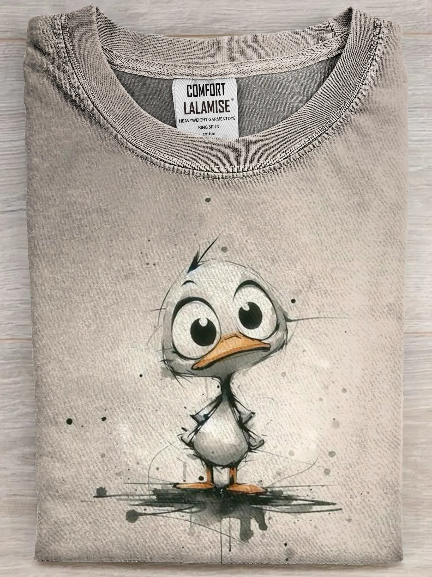 Funny Retro Cute Duck Art Print Casual Cotton Short Sleeve T-shirt