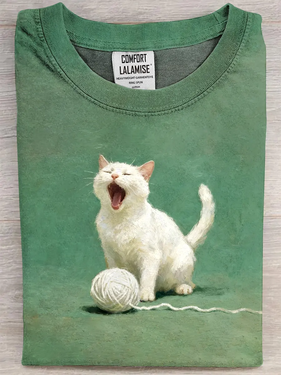 Funny Cat Art Print Casual Short Sleeve T-shirt