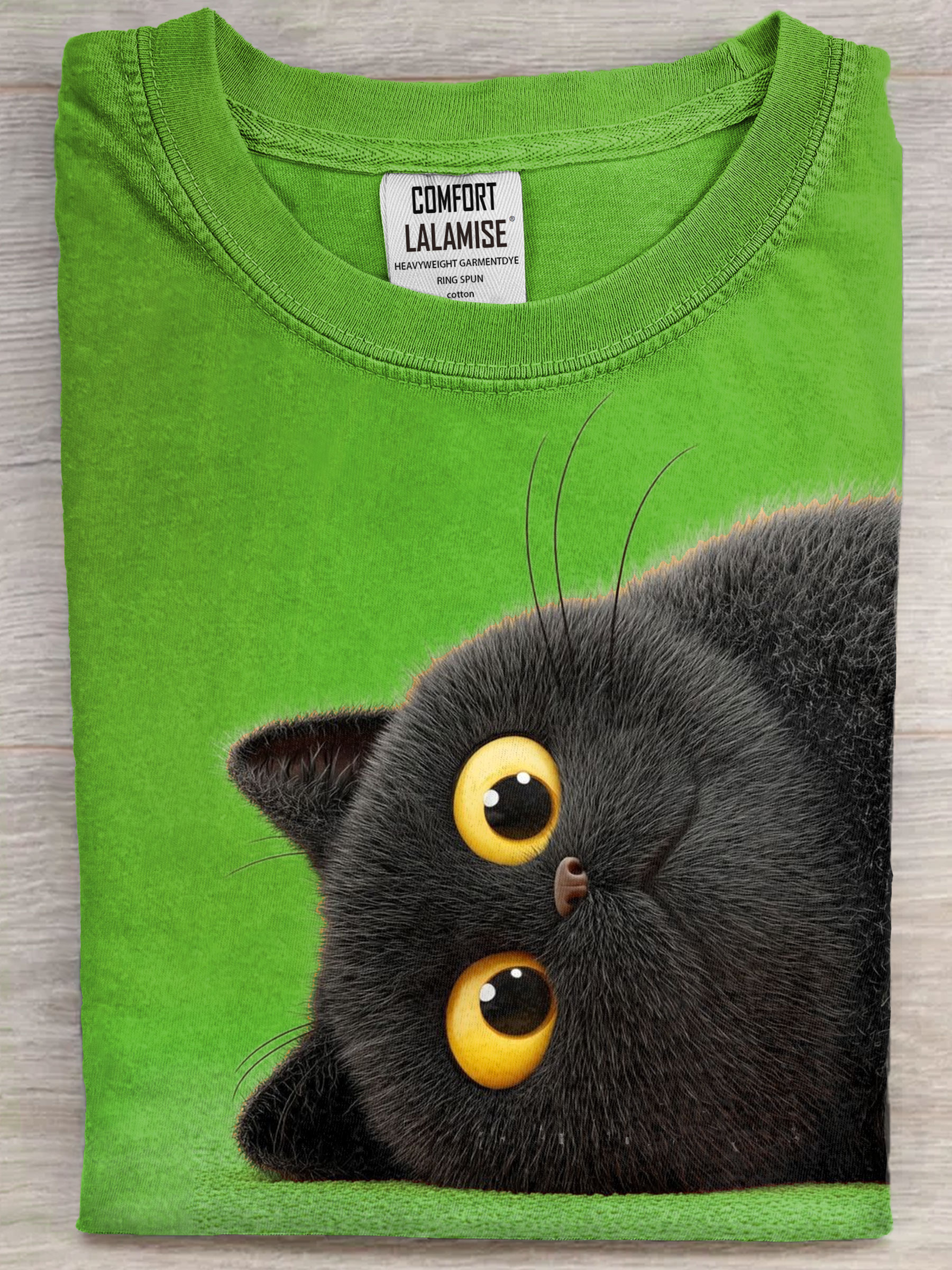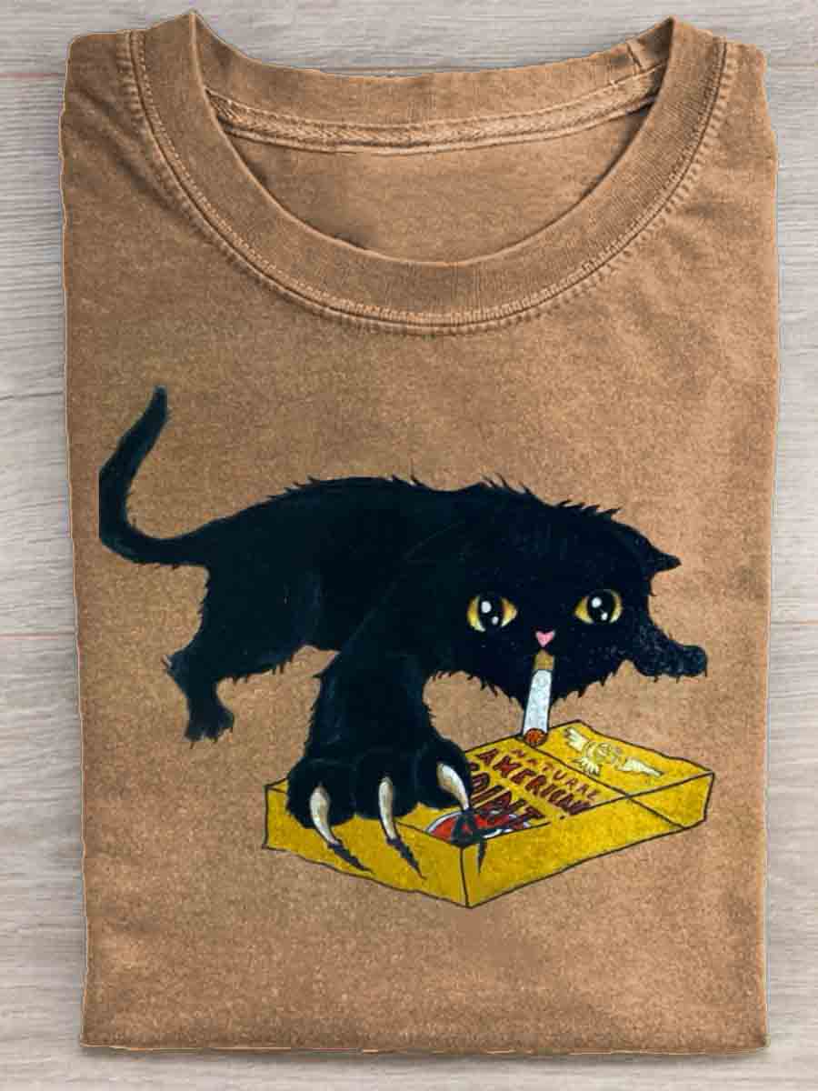 Retro Cute Cat Art Fun Print Casual Pure Cotton Short Sleeved T-shirt