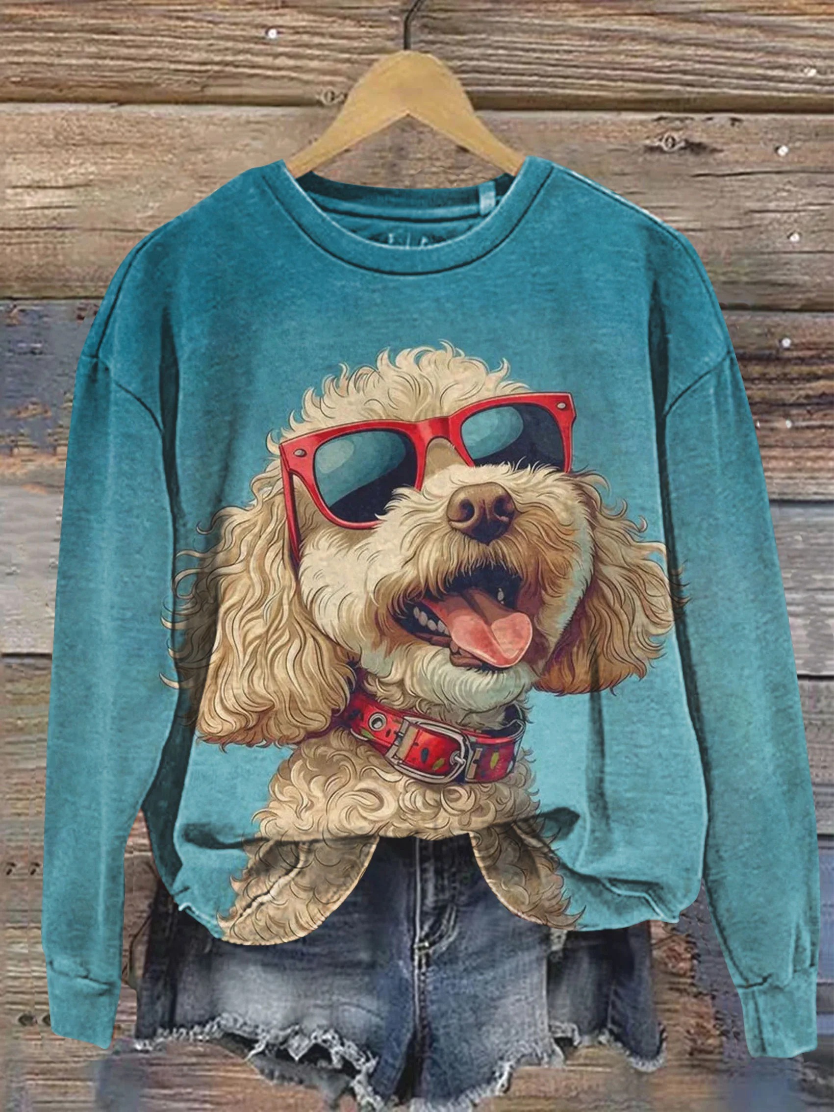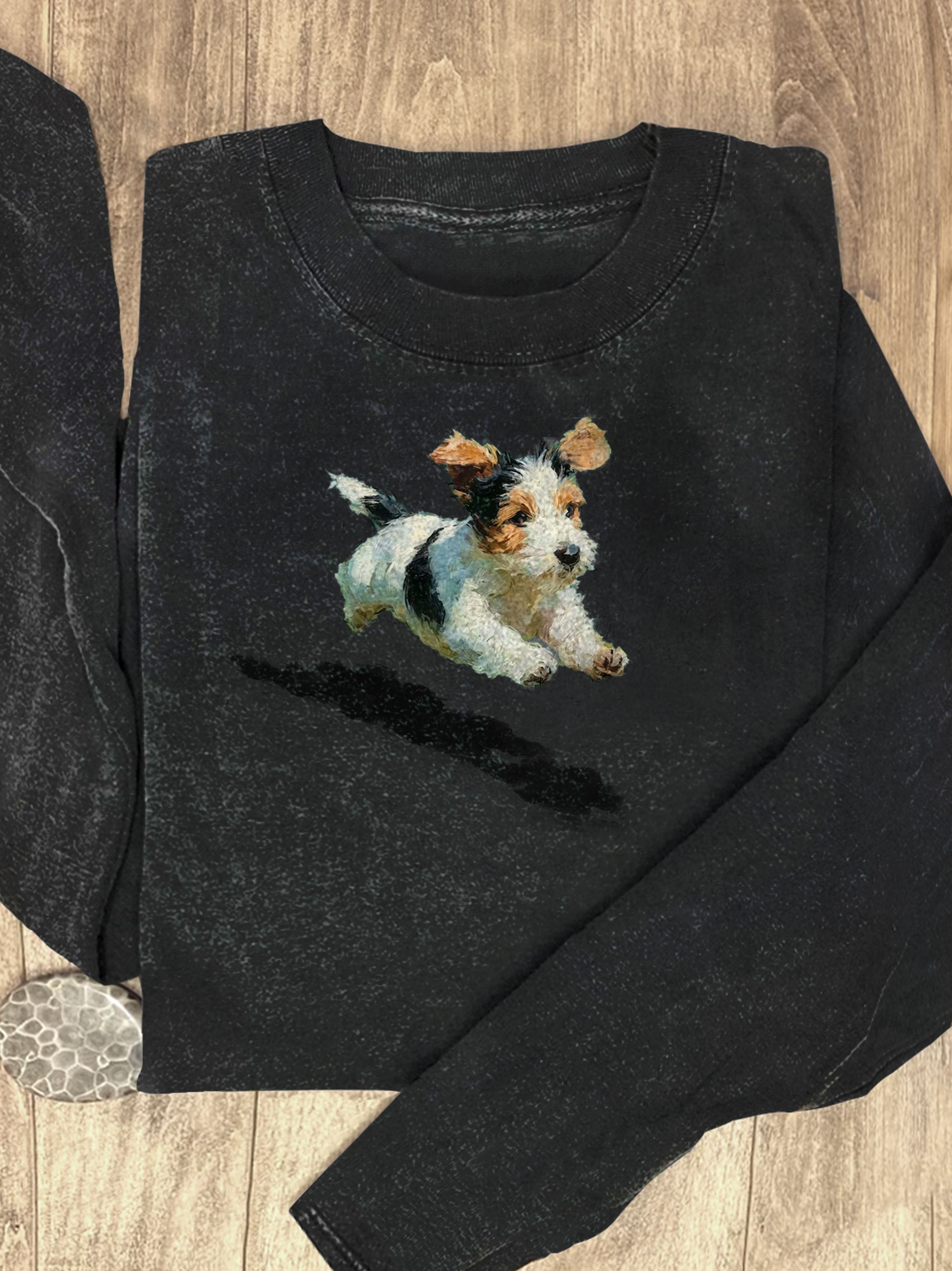 Funny Retro Cute Dog Art Print Casual Cotton Short Sleeve T-shirt