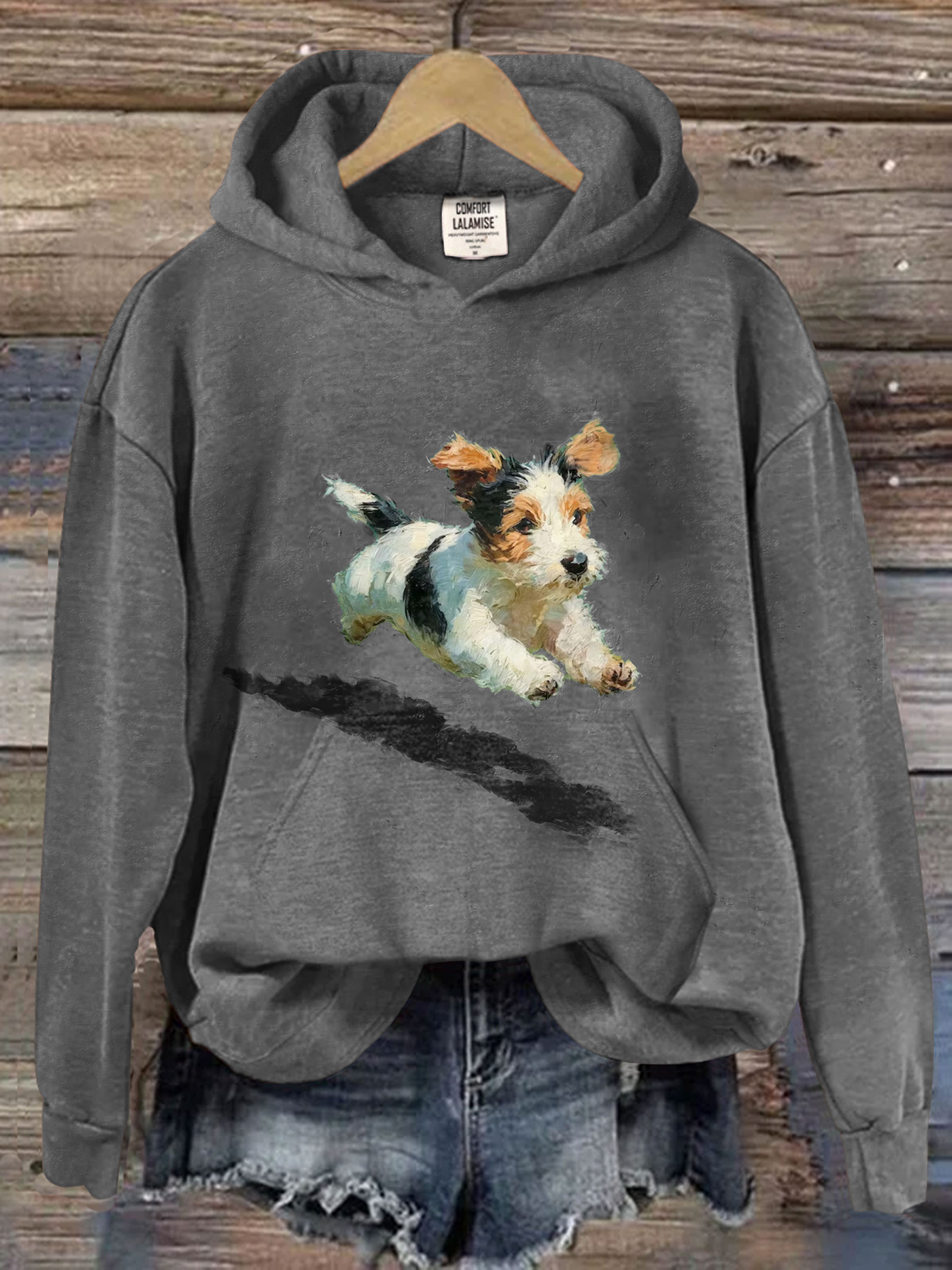Dog Running In Grass Art Casual Hoodie Sweatshirt