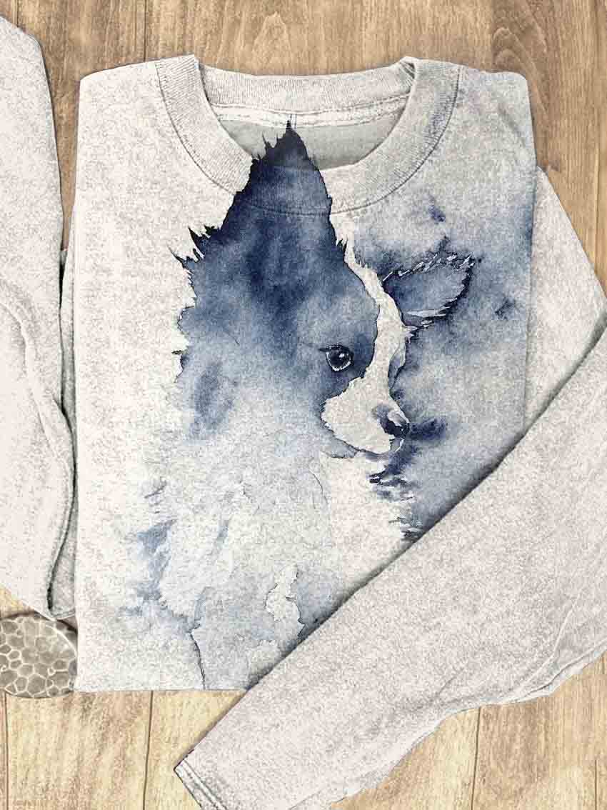 Corgi Watercolor Painting Cute Dog Art Print Casual Sweatshirt