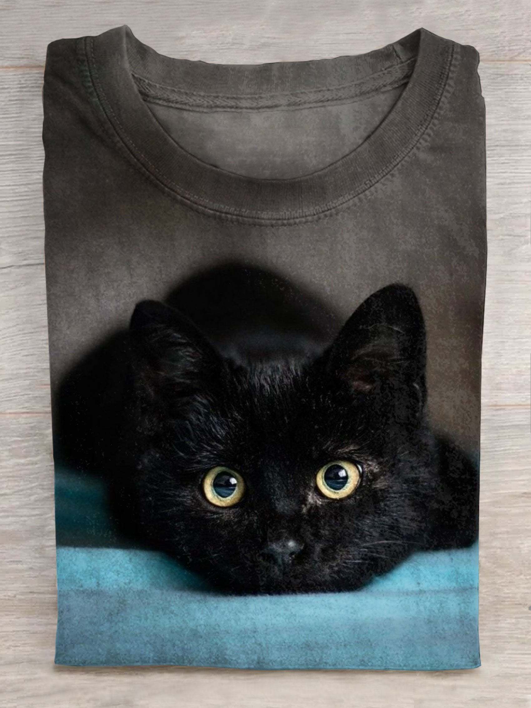 Cat Art Print Short Sleeve Casual T-shirt