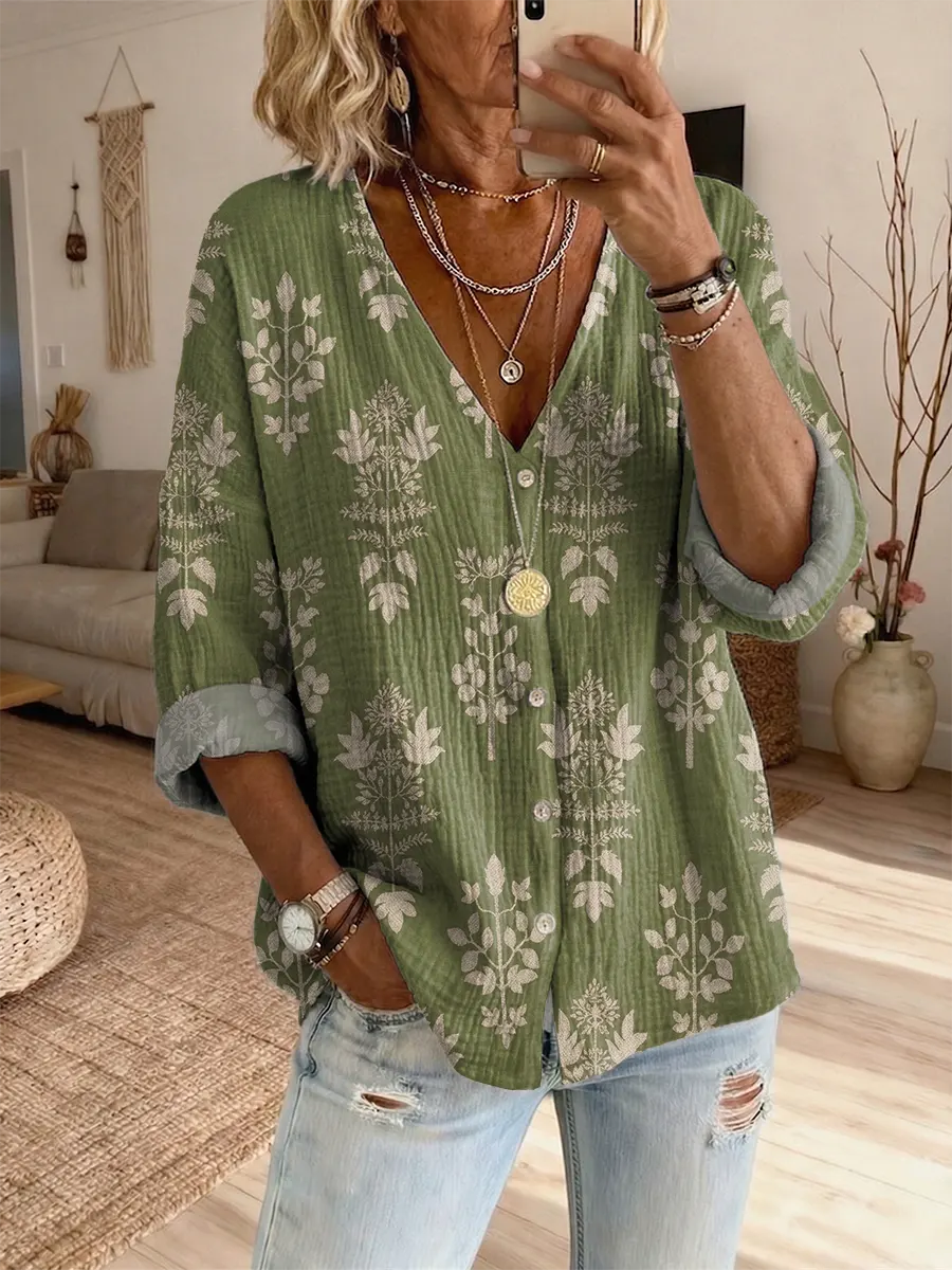 Ethnicity Totem Women's Art Print Casual Long-sleeve V-neck Shirt