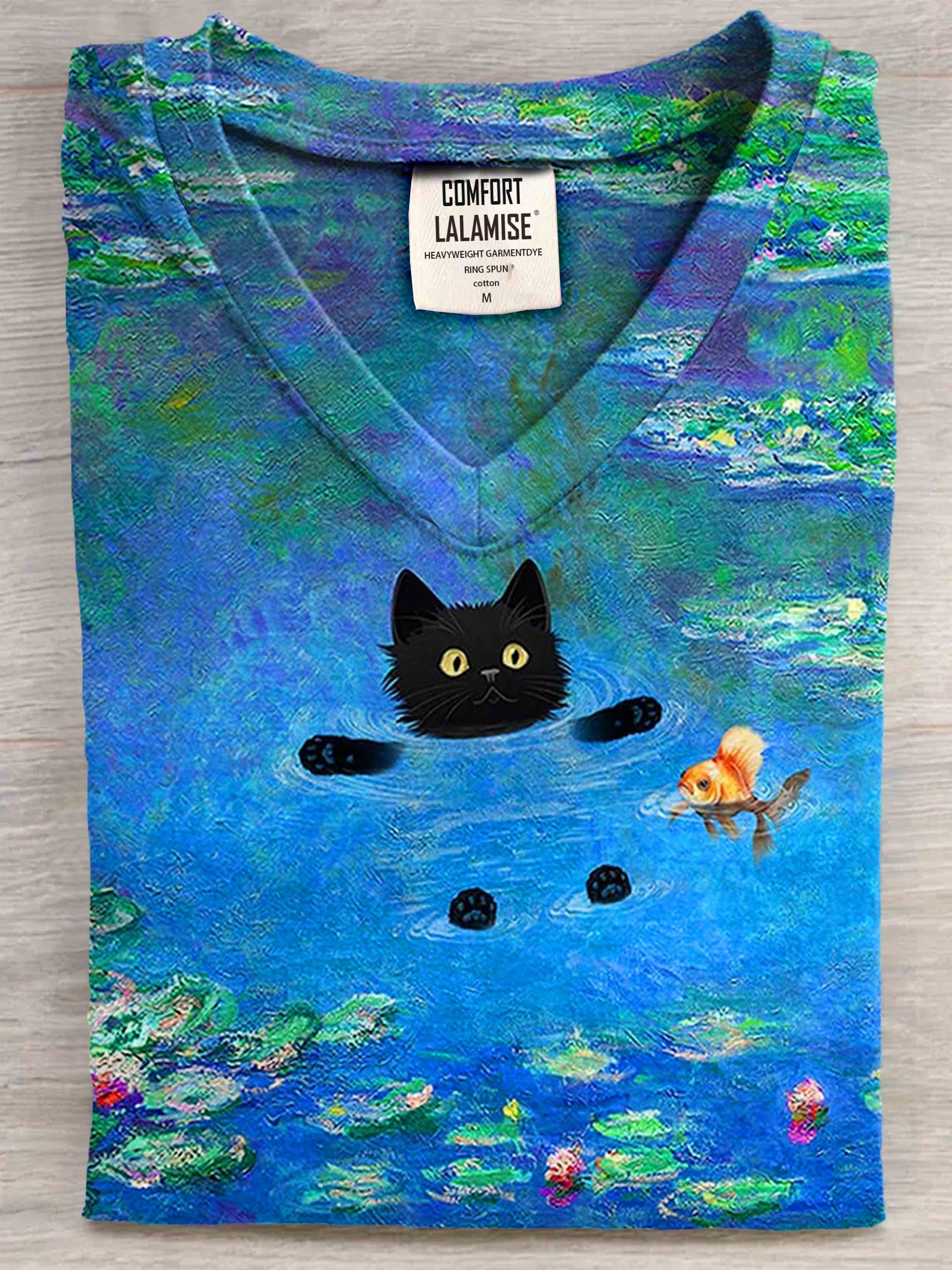 Funny Cat Art Print V-neck Casual T-Shirt