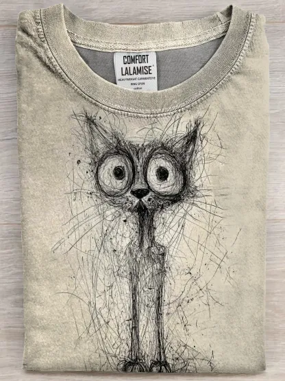Funny Retro Cat Art Print Casual Cotton Short Sleeve T-shirt