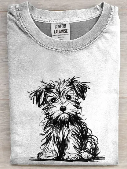 Funny Retro Cute Black Dog Art Print Casual Cotton Short Sleeve T-shirt