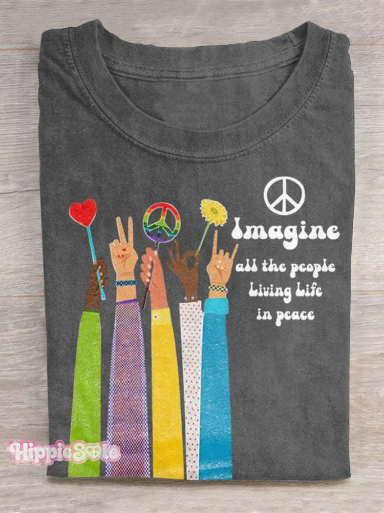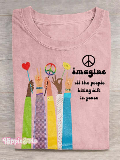 Imagine All The People Living Life in Peace Art Print Casual T-shirt