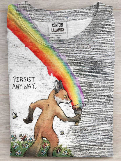Persist Anyway Fox Art Print Casual Short Sleeve T-shirt
