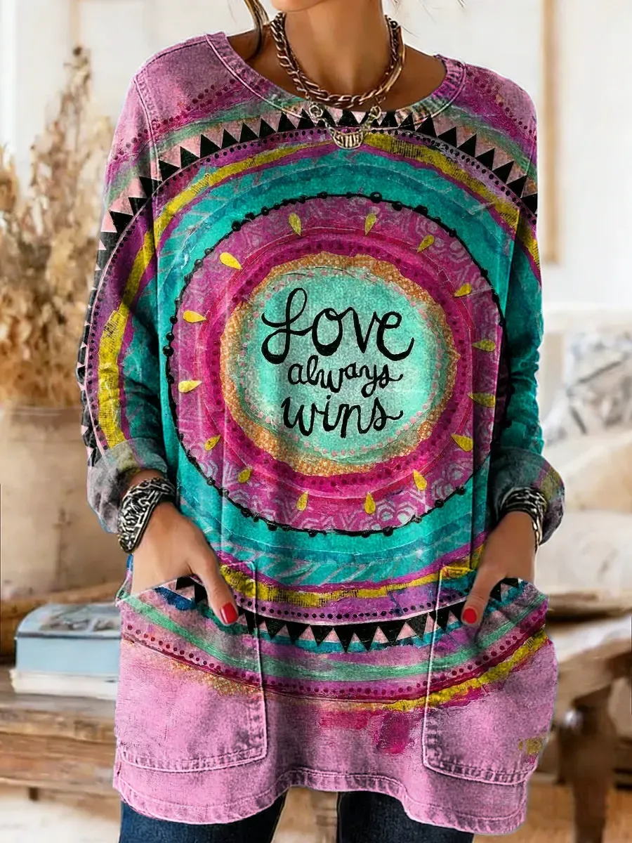 Retro Love Art Print Casual Washed Denim Cotton Top