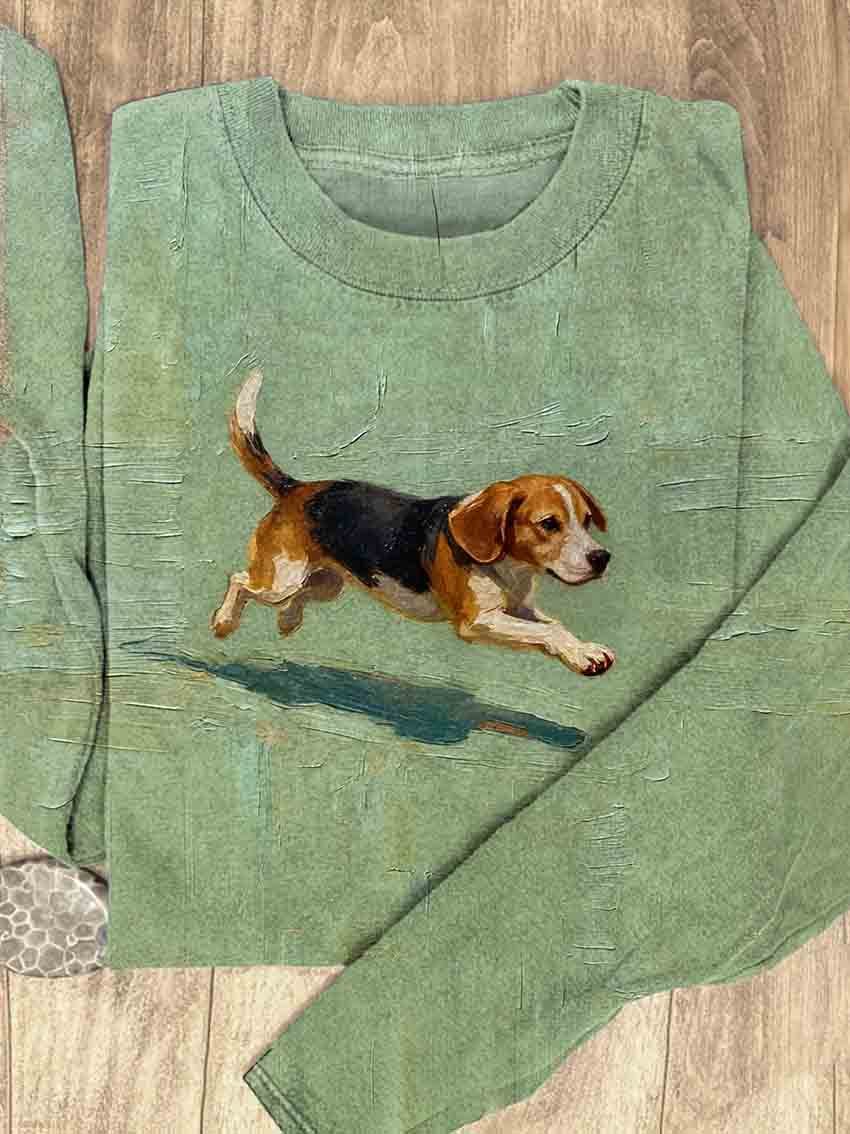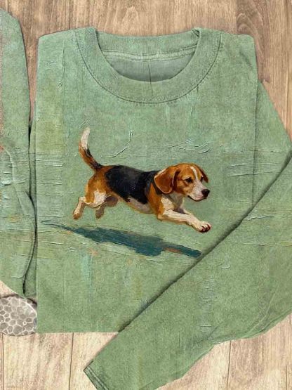 Running Beagle Cute Dog Art Print Casual Sweatshirt
