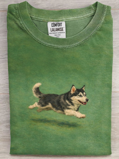 Running Dog Art Print Casual Short Sleeve T-shirt