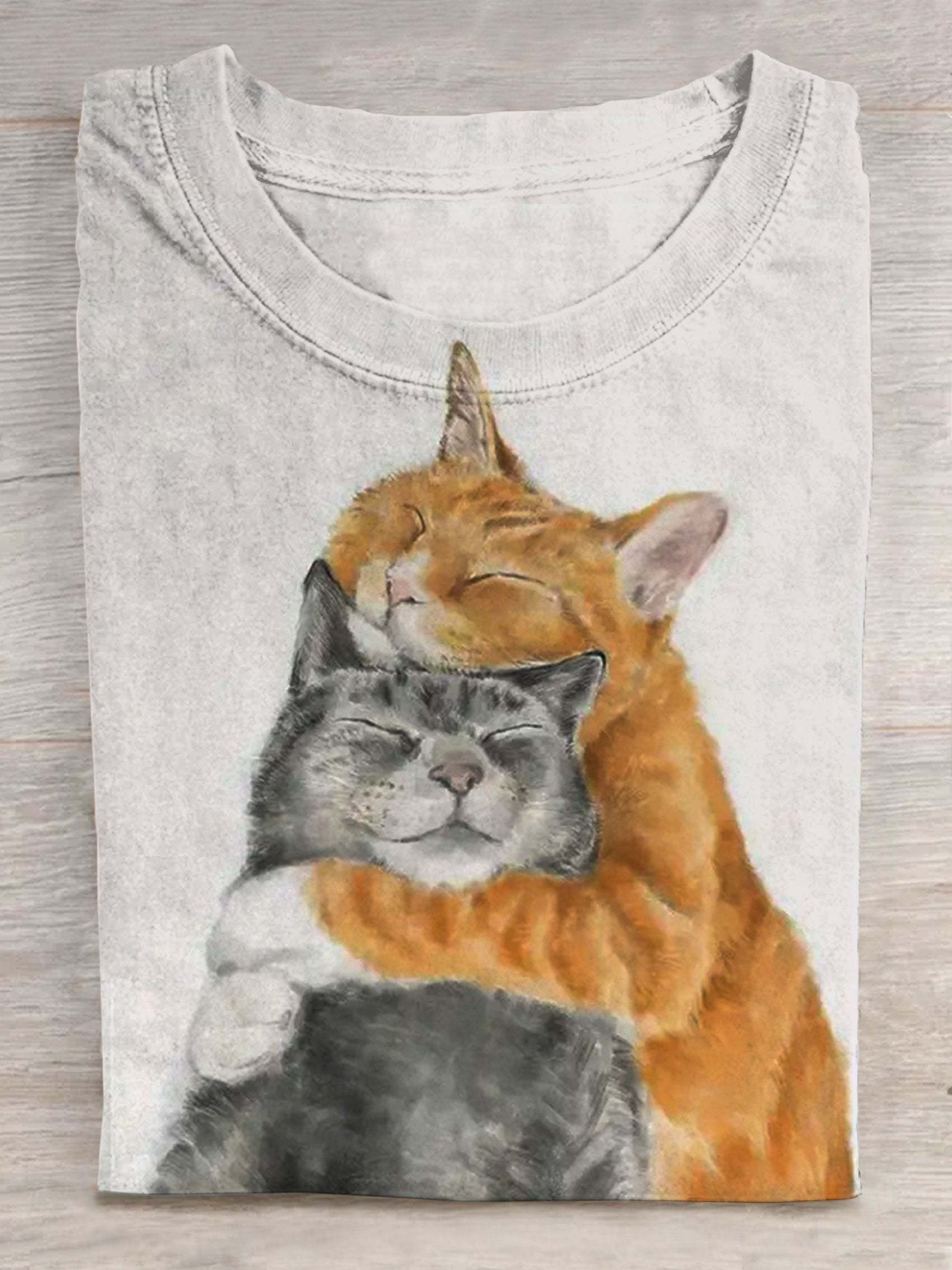 Unisex Cute Cat Art Print Casual T-shirt