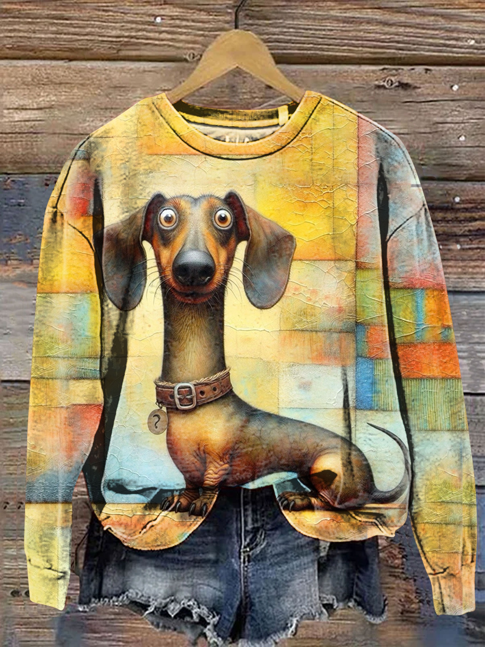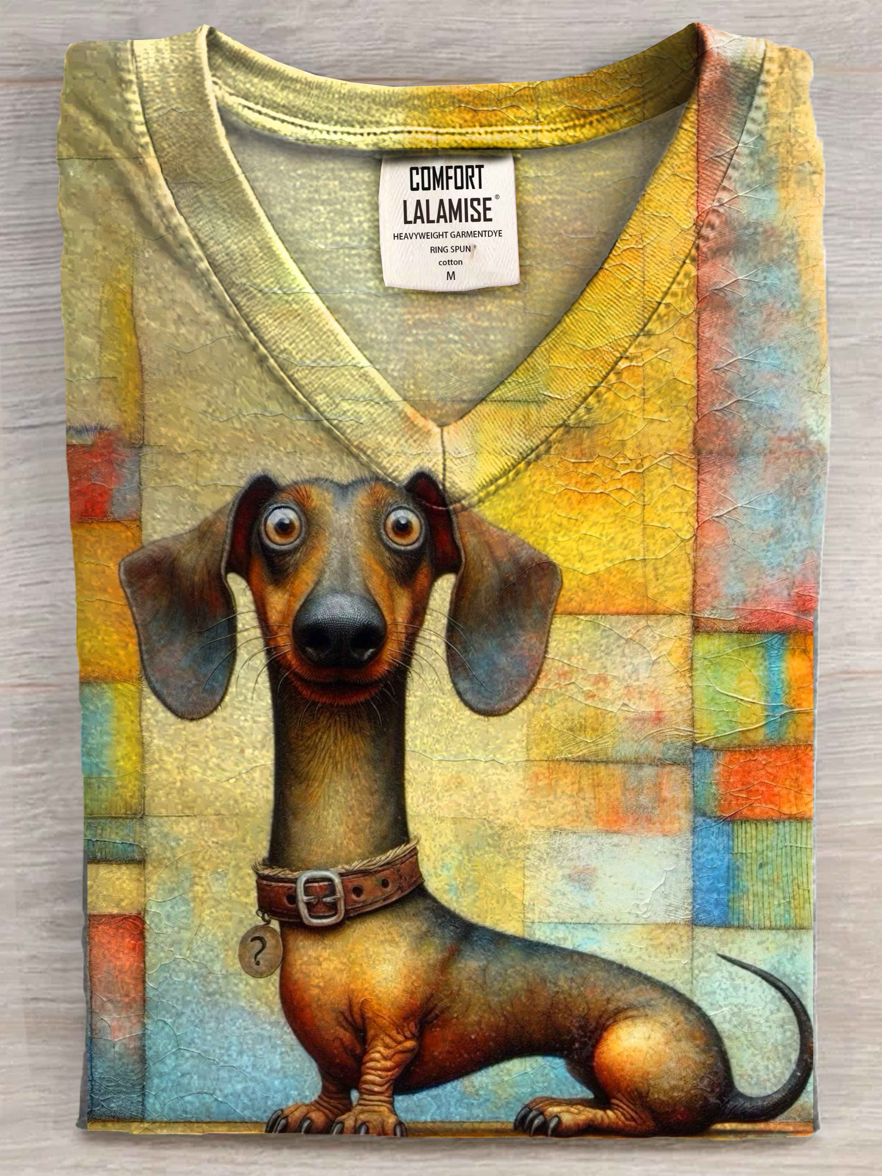 Vintage Dachshund Dog Art Print Casual Short Sleeve T-shirt