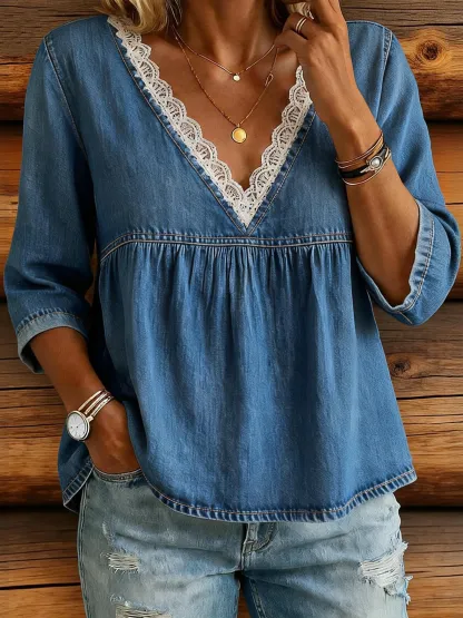 Women's Casual Washed Cotton Denim Top