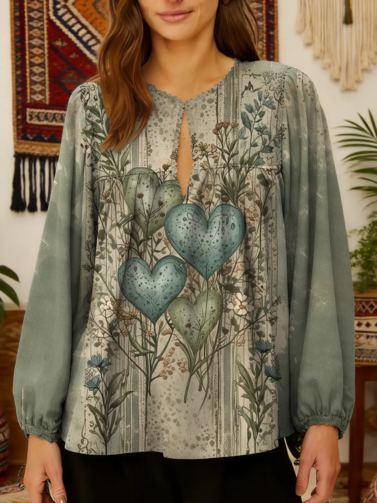 Women's Floral Heart Pattern Art Print Casual Long Sleeve