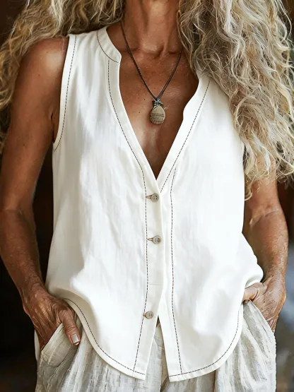 Women's Retro Casual V-neck Washed Cotton Denim Vest