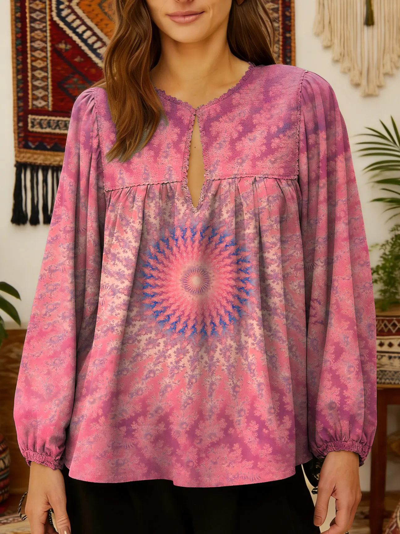 Women's Tie-dye Mandala Pattern Art Print Casual Long Sleeve