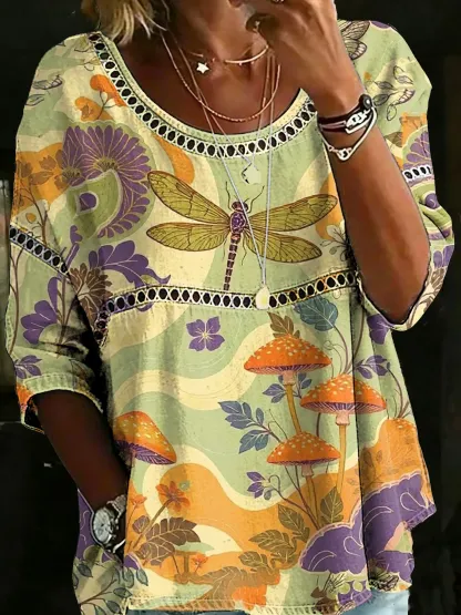 Women's Vintage Dragonfly Casual Loose Denim Blouse Shirt