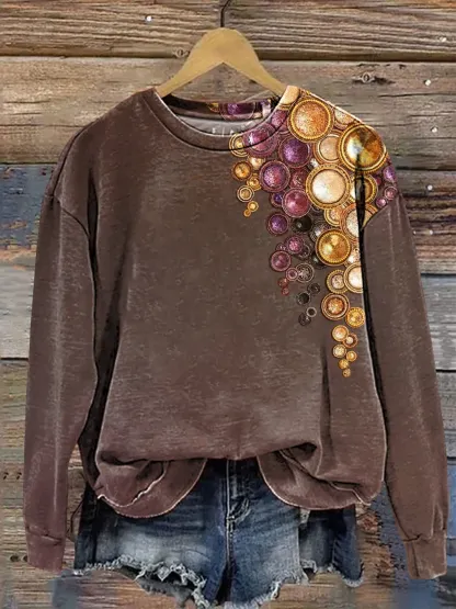 Retro Pattern Print Casual Sweatshirt