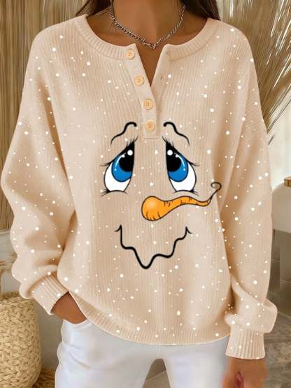 Women's Casual Christmas Button-Up Sweatshirt