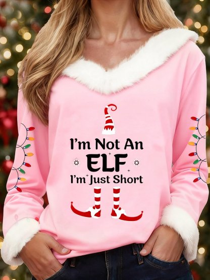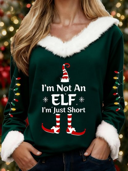 Women's Christmas Fun Slogan V-Neck Top