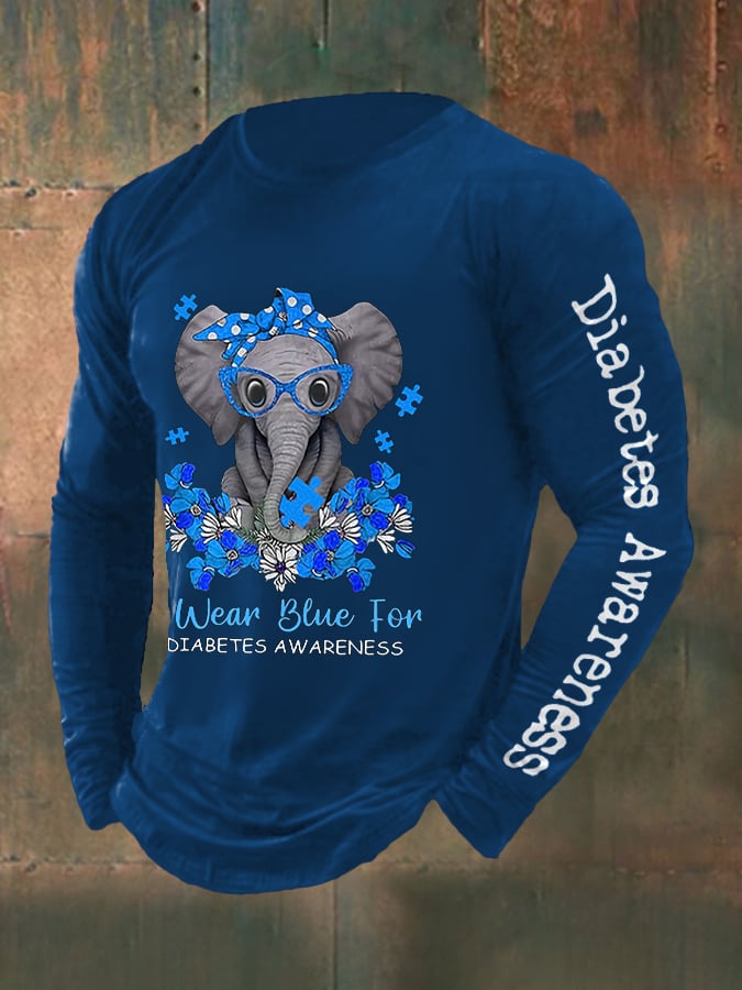 Men'S Retro Retro I Wear Blue For Diabetes Awareness Print T-Shirt