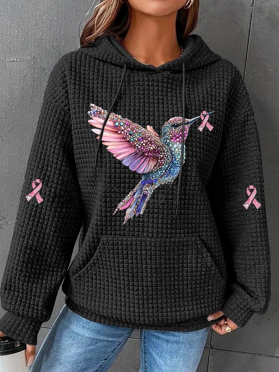 Women's Breast Cancer Hummingbird Ribbon Print Hoodie
