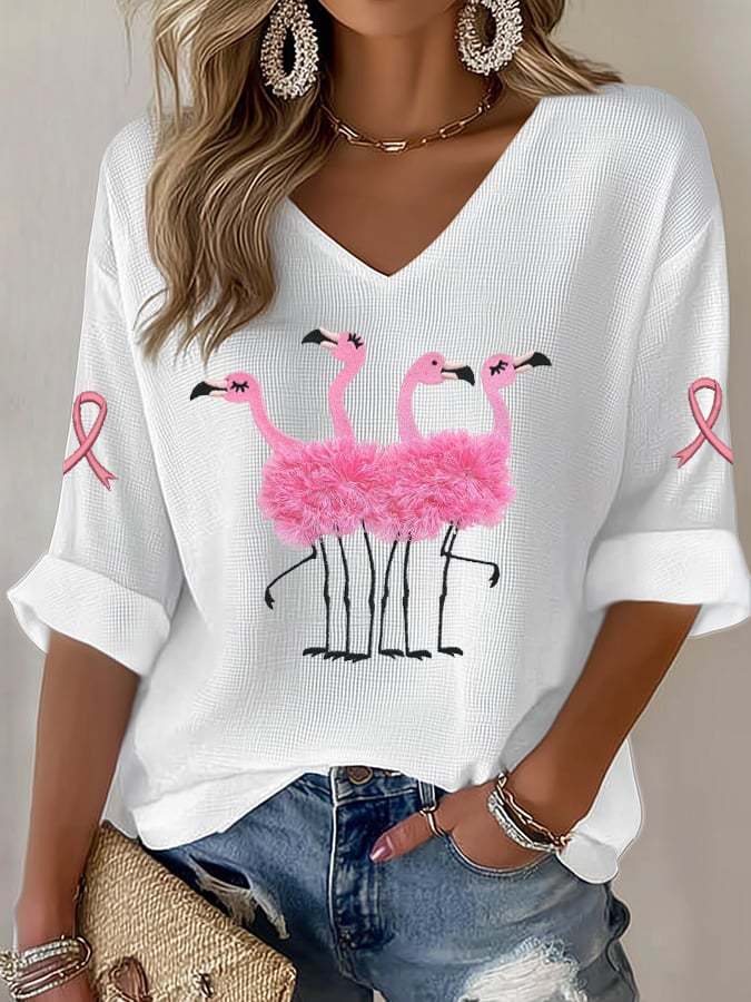Women's Breast Cancer Print Waffle T-shirt