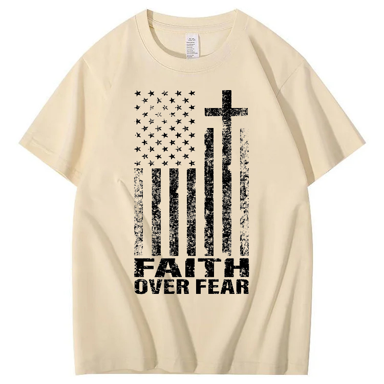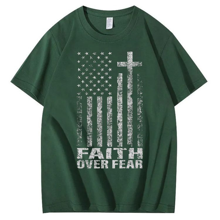 Faith Over Fear Amercian Flag Pattern Printing Print Crew Neck T-Shirt