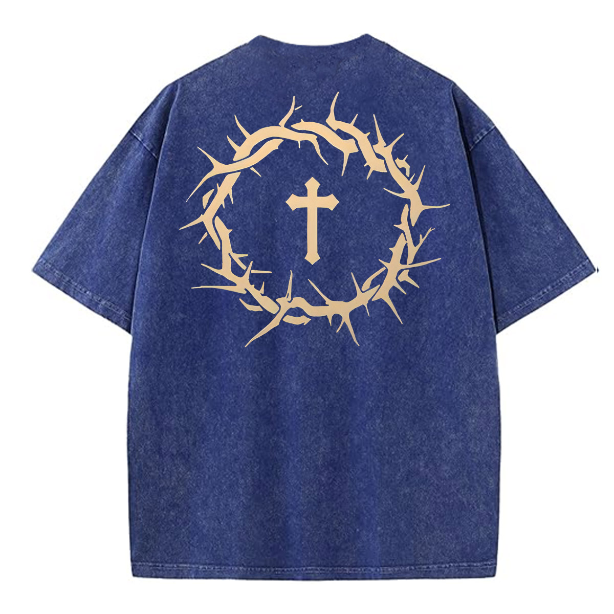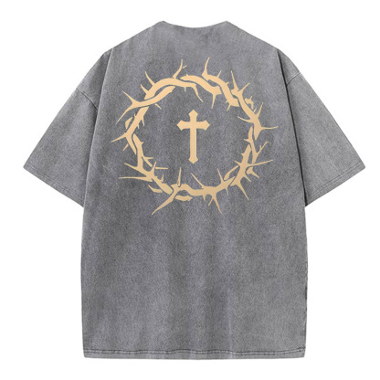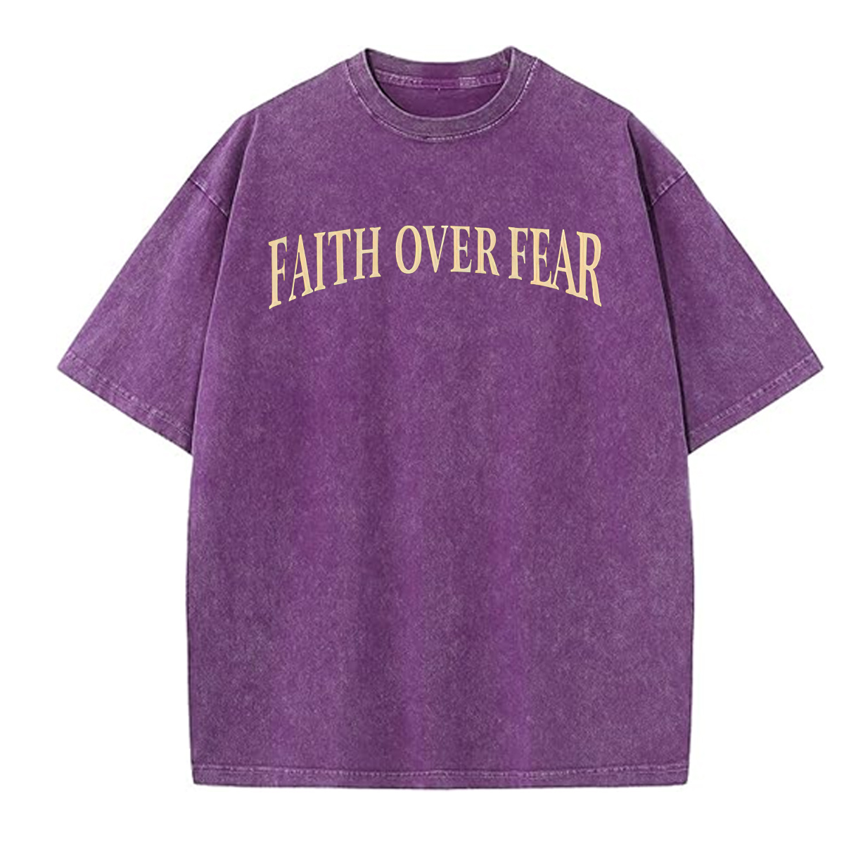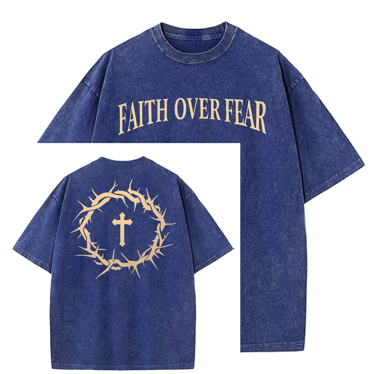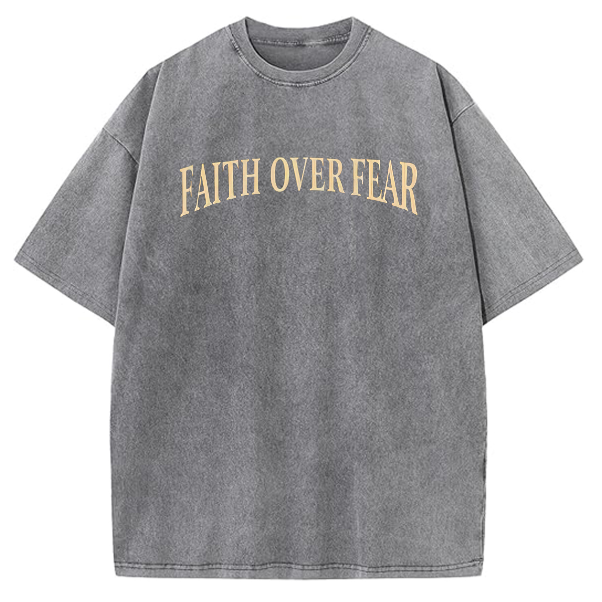 Faith Over Fear Pattern Washing And Aging Process Crew Neck T-Shirt