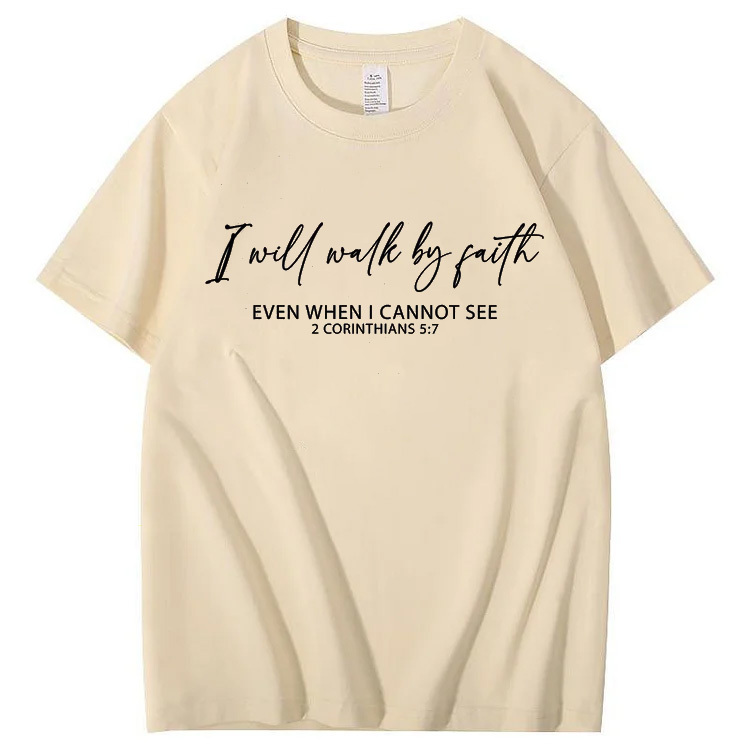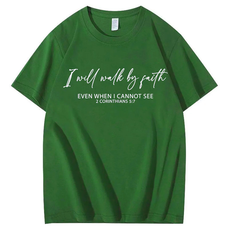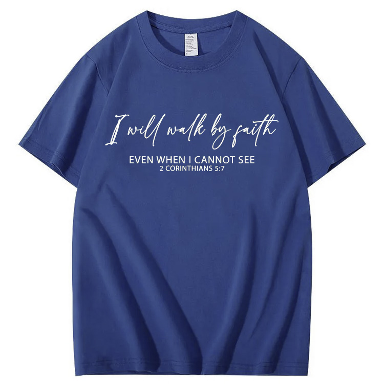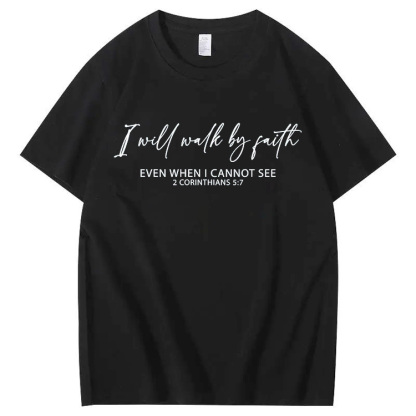 I Will Walk By Faith Print Crew Neck T-Shirt