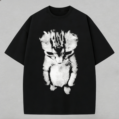 Sad Meme Cat Printed Oversized T-shirt