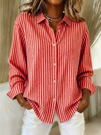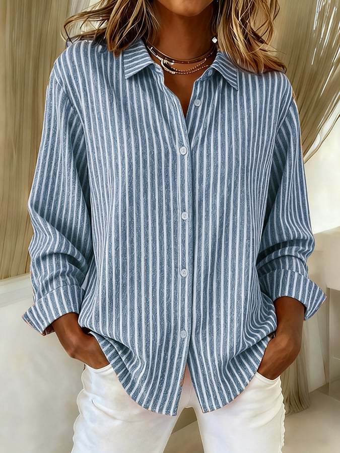 Women's Casual Retro Striped Cotton And Linen Shirt
